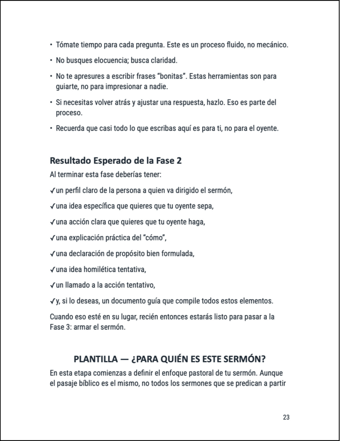 Este manual no muestra sermones modelo ni bosquejos para imitar.